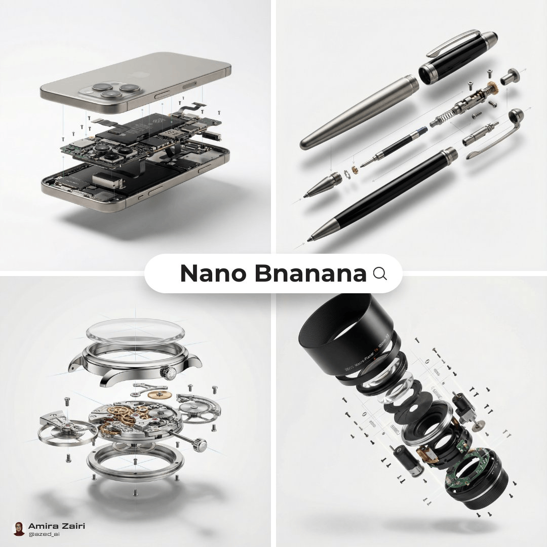 [产品],高端产品广告,纯白无缝背景,爆炸视图展示内部结构,外壳悬浮于核心部件上方,微型螺丝与零件悬空排列,具有完美的对齐参考线,清晰柔和的阴影,超写实风格,微距产品摄影,100mm镜头效果,光圈f/8,8K分辨率,1:1画幅比例。