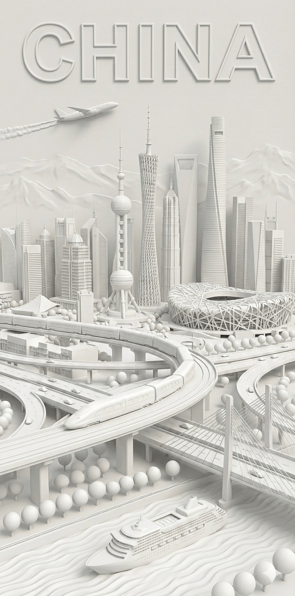 一个高度精细的3D浅浮雕海报设计,代表[CITY_NAME]。一个密集拼贴构图,展示[CITY_NAME]最具标志性的地标与天际线。前景填满本地交通系统、繁忙的高速公路网络与微型汽车,以及原生植被。顶部以大型凸起英文大写字体呈现地点名称。纯白色单色黏土渲染、凸版纸张纹理、柔和工作室布光、高视觉密度、简洁商业插画风格。 --ar 1:2