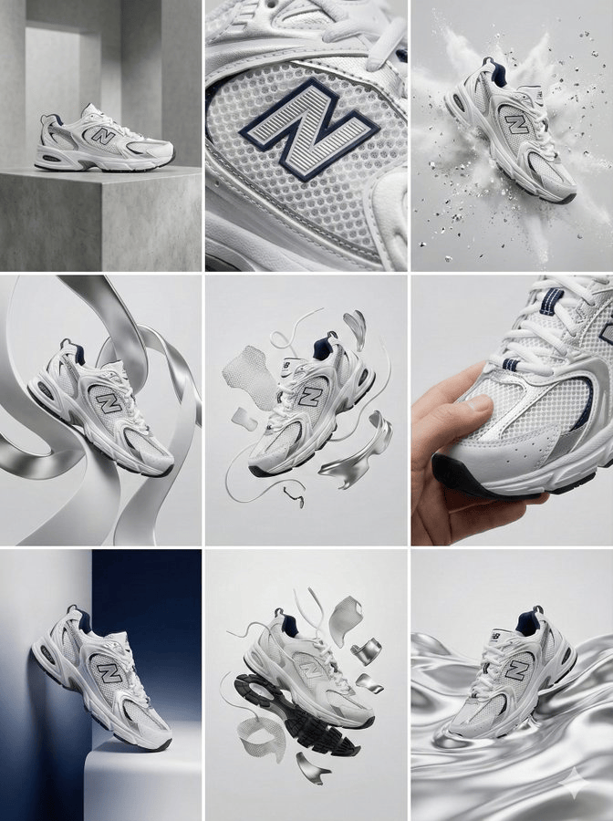 每个格子的画面必须呈现一个独特的视觉概念,同时确保所有九张图像中的产品保持完全一致。