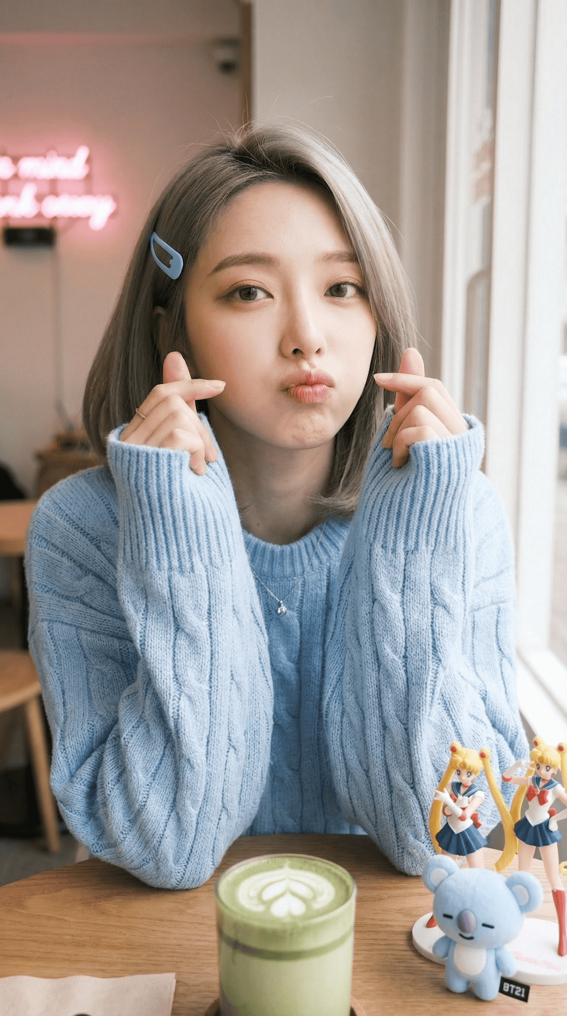 "mood": "俏皮撒娇,甜蜜调皮的魅力,韩式咖啡厅约会自拍氛围,女友感",