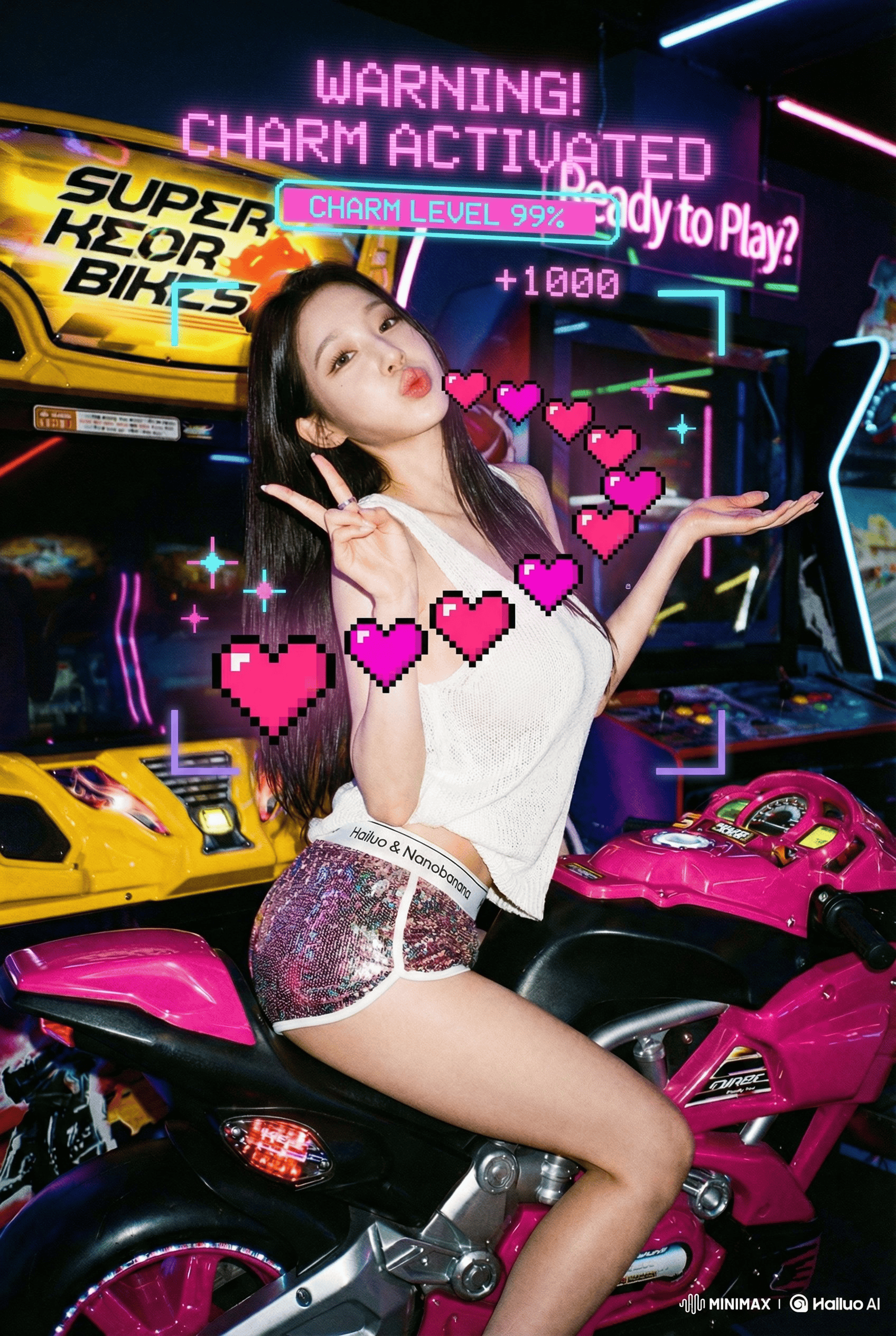 **请勿**改变女孩的发型、服装、体型、灯光或游戏厅背景。